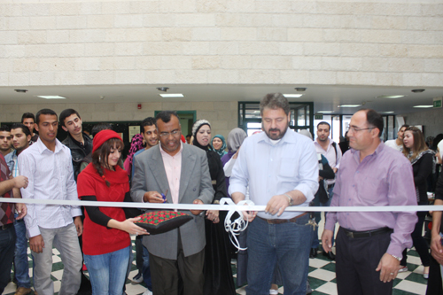 وافتتح المعرض السيد احمد أبو عايش، مدير المركز الفلسطيني للديمقراطية وحل النزاعات، بحضور كل من الأستاذ كمال زيدان، رئيس قسم الفنون التشكيلية والأستاذ احمد الحاج حمد، منسق ورش العمل والفعاليات اللامنهجية والمعارض في كلية الفنون الجميلة، وعدد من أعضاء الهيئة التدريسية في الكلية وجمع من طلبة الجامعة.