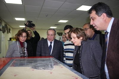 وبعد ذلك توجه الضيوف إلى افتتاح الورشة الفنية التي تم إنشاؤها مؤخراً في كلية الفنون من اجل خدمة طلبة الكلية في تنفيذ الأفكار والتصاميم الفنية حيثُ تم عرض بعض الأعمال من إنتاج الطلبة الذي تم تنفيذها في ذلك الورشة وهي أعمال فنية مبتكرة مصنوعة من خامة النحاس المشكل والمطعم بخامات متعددة مثل الأخشاب والسيراميك والزجاج والمعادن، بالإضافة إلى مشاهدة الطلبة أثناء تنفيذهم لهذه الأعمال على أجهزة حديثة اليدوية التي تحتويها هذه الورشة وكانت جميع هذه الأعمال مستنبطة من الصناعات التقليدية والحرف اليدوية الفلسطينية التي توارثوها عن الآباء والأجداد والتي تم تطويرها وتنفيذها بأسلوب فني ومعاصر يواكب الحداثة حيث نالت الأعمال المعروضة إعجاب الزوار والضيوف واصفين إياها بالأعمال المبتكرة التي تلبي حاجات المجتمع المعاصر.