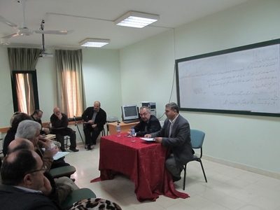 ضمن توجهات رئاسة الجامعة التواصل مع كلياتها، قام الأستاذ الدكتور ماهر النتشة، نائب الرئيس للشؤون الأكاديمية يوم الأربعاء 28/11/2012 بزيارة كلية الفنون الجميلة حيث كان في استقباله الدكتور حسن نعيرات، عميد الكلية ورؤساء الاقسام . وقد عُقد اجتماع مع أعضاء الهيئة التدريسية والإدارية في قاعة مبنى الفنون رحب فيه د. نعيرات بالضيف وشكر إدارة الجامعة ممثلة برئيسها الأستاذ الدكتور رامي حمد الله على الدعم الذي تقدمه إلى هذه الكلية الذي لولاه لما وصلت الكلية إلى ما هي عليه اليوم من تطور وتقدم، وكما شكر الأستاذ الدكتور نائب الرئيس أعضاء الهيئة التدريسية والإدارية على الجهود التي يبذلونها في تطوير ورفع المستوى الأكاديمي لطلبتهم وقد تحدث عن أهمية ما تقوم به إدارة الجامعة ومجلس العمداء الخاص بإعادة هيكلية بعض الكليات حيث تم استثناء كلية الفنون من هذه الهيكلية نظراً لخصوصيتها الفنية، وأن هذا الأمر يتطلب تحديث الخطط الدراسية للكلية بما فيها التركيز على التدريب العملي للطلبة بالإضافة إلى التركيز على التواصل مع المجتمع المحلي من خلال المعارض وورش العمل وقد من طلب إدارة الكلية ضرورة تطوير آليات تدعم في هذا الاتجاه.