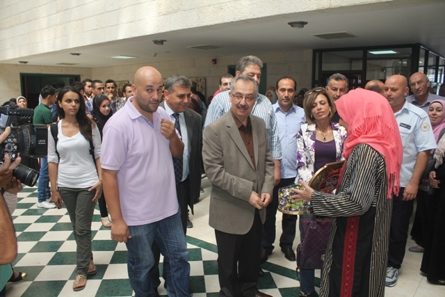 وشارك في افتتاح المعرض، د. حسن نعيرات، عميد كلية الفنون الجميلة، والسيد حمدالله عفانه، مدير مكتب وزارة الثقافة في نابلس، والسيدة سماح الخاروف، مدير المراكز الثقافية في محافظة نابلس، ود. غاوي غاوي، رئيس قسم العلوم الموسيقية، وأ. أحمد الحاج حمد، منسق اللجنة الثقافية في كلية الفنون، بالإضافة إلى عدد من العاملين في الكلية، وجمع من طلبة الكلية والجامعة.
