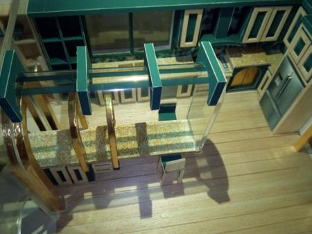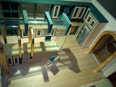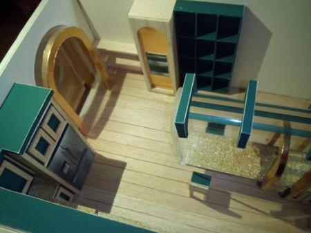 تم استخدام اسلوب البوست مودرن ديزاين لمعالجة الفراغ. استخدام هذا الأسلوب ساعد بتصميم غرفة نوم بعيدة عن غرف النوم التقليدية مما اعطى ايقاع وجمال بحل الواجهات الداخلية. تم استخدام خامة الخشب والزجاج والرخام.