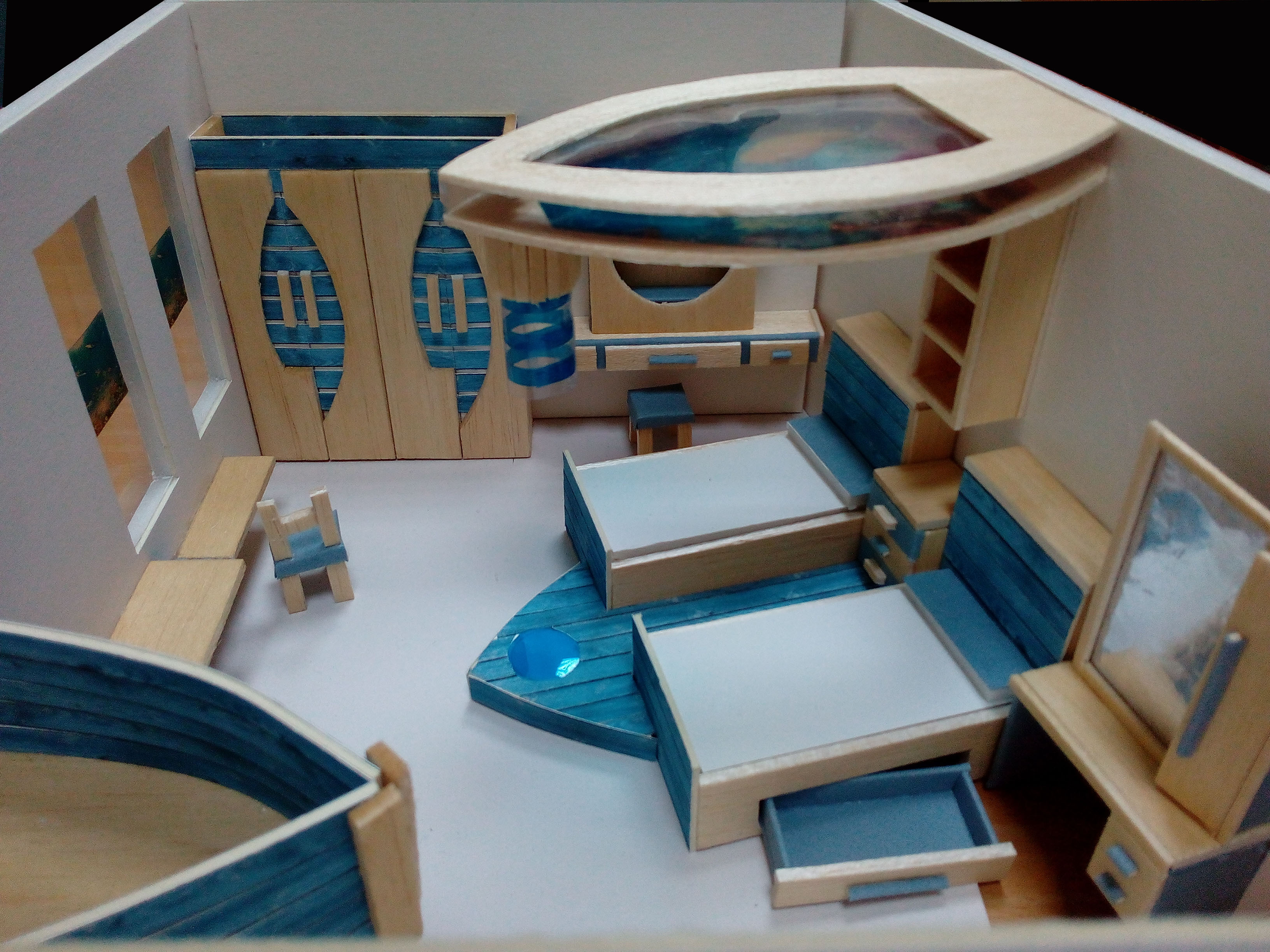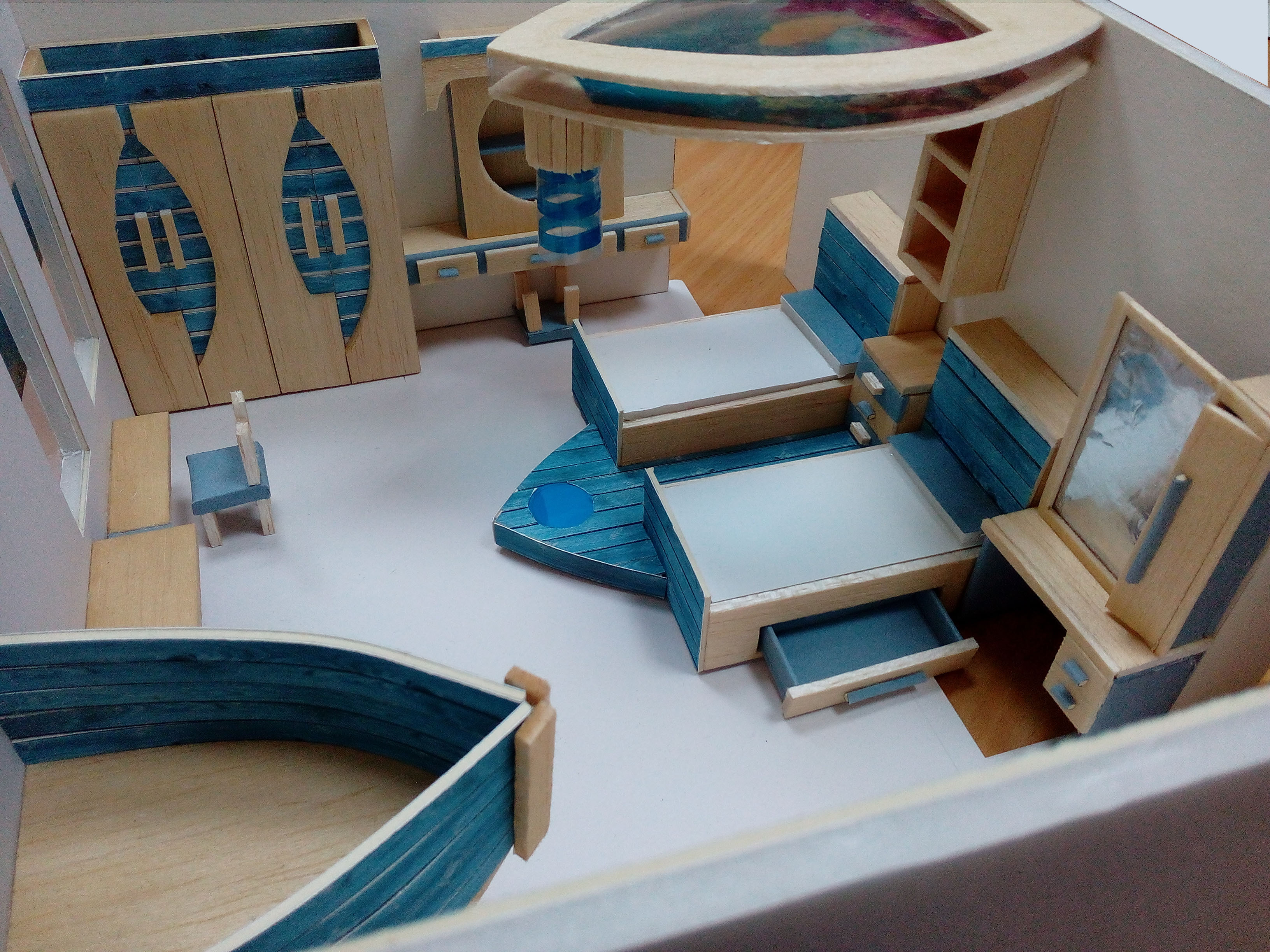 اسم المشروع: غرفة نوم اطفال للفئة العمرية 11-14 تم استلهام الفكرة من عناصر من الطبيعة وخاصة ما يتعلق بالبحر.